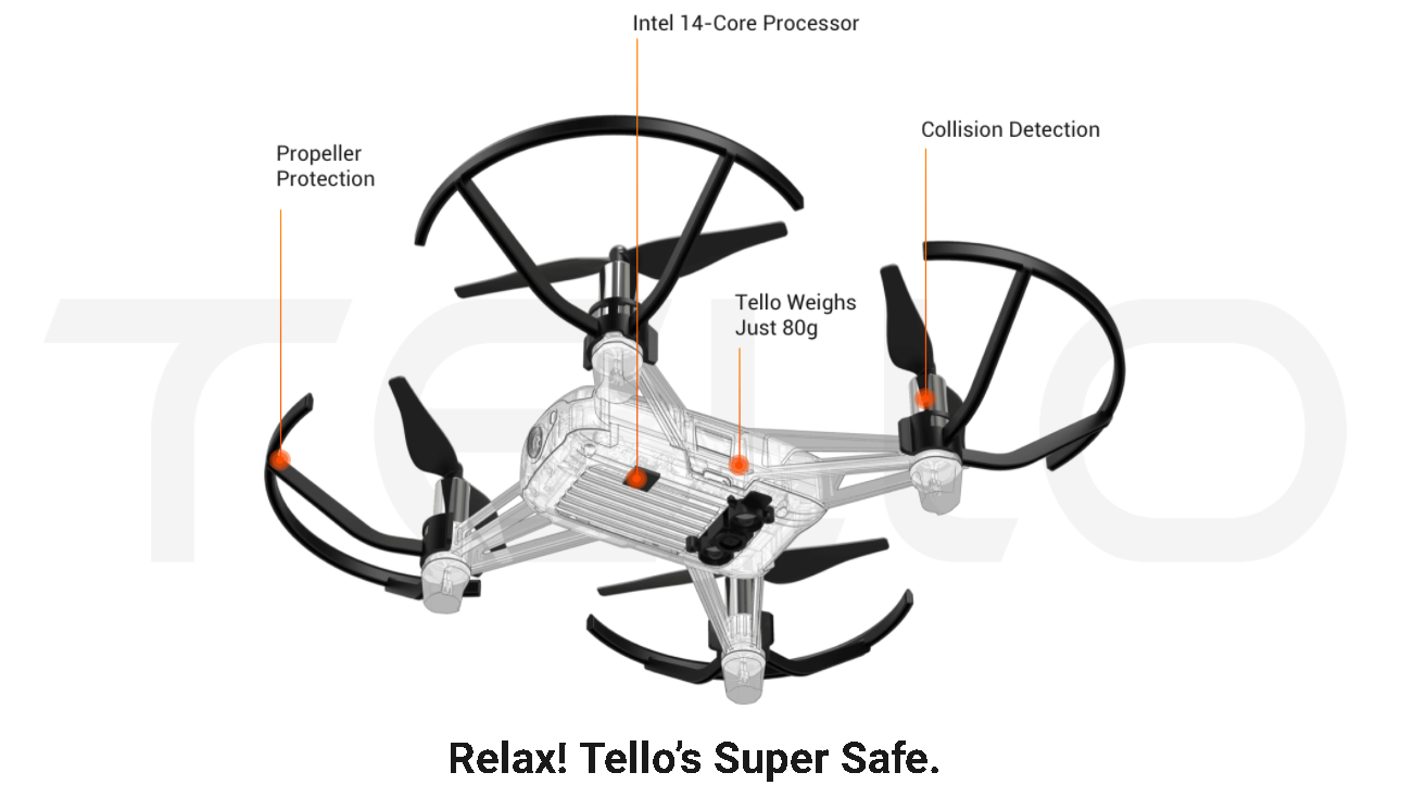 A DJI Tello – de akár Ryze Tello-nak is hívhatnánk- a paletta új, és egyben legolcsóbb modellje. A nagynevű gyártónak nyitnia kellett valamerre, már pedig felfele nem lehetett, hiszen a Phantom 4 Pro+ és az Inspire 2-t nem sok minden veszélyeztetni a piacon. Ellenben 100 dollár körül nem nagyon volt drón, amit el lehetett volna adni, idáig.