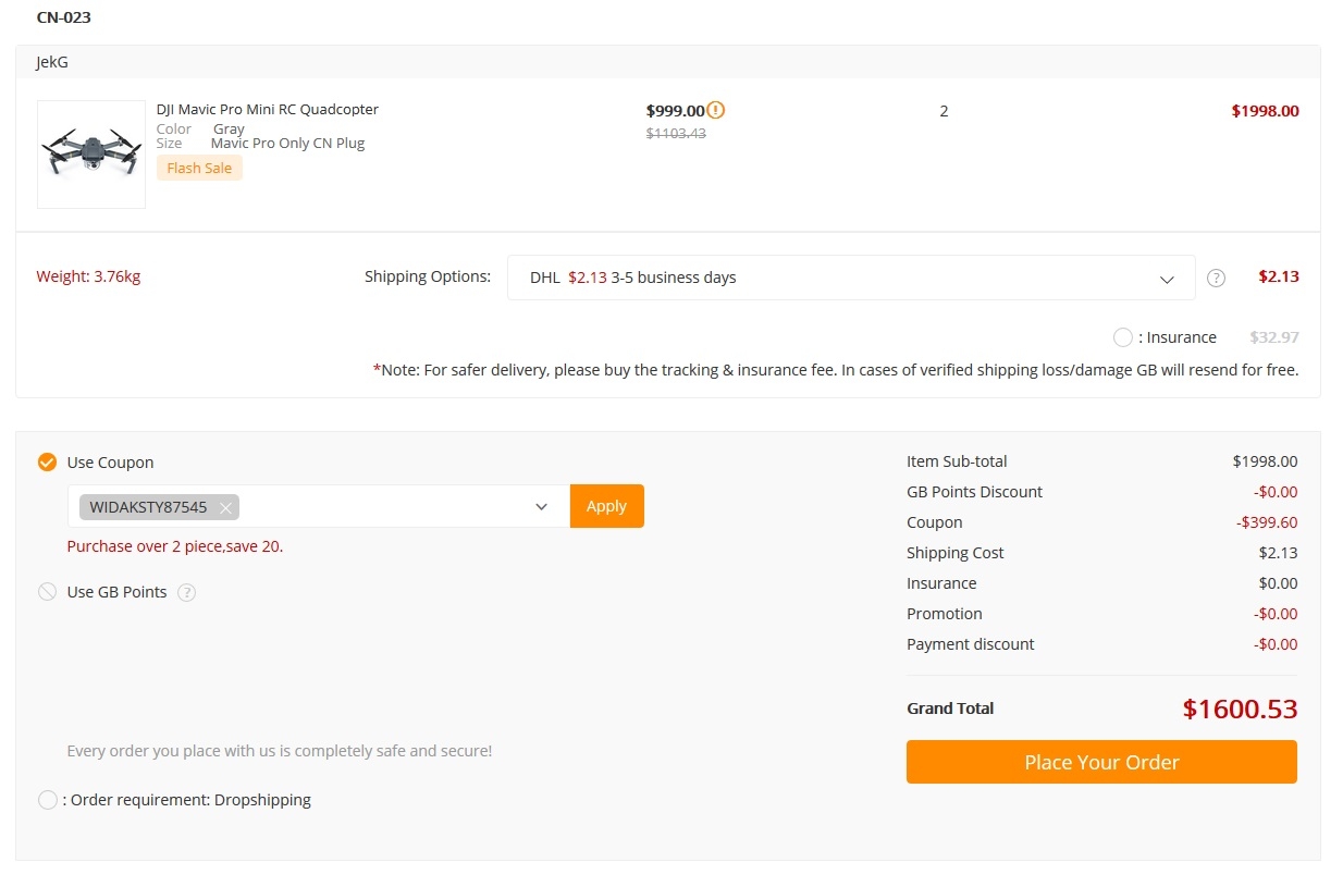 Az első esetbe tehát 2 Mavic 1600$, tehát mindkét gép egységár 800$ lesz!!!
