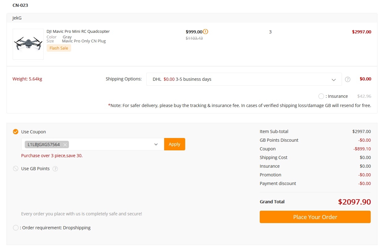 A második eset ennél is jobb, mivel itt 3 Mavicet kapunk 2100$-ért, tehát a gépek egységára 700$ lesz!