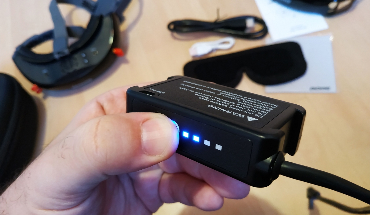Az akku-tok kellemes darab, USB-ről tölthető és egy 4 ledből állá sor jelzi a töltöttséget gombnyomásra. A tokot nem lehet kinyitni, így nem tudjuk benne az akkut cserélni, ami egyébként egy 1800mAh-s 7.4V-os Li-Po. Az aksi kábelt egyébként szépen be lehet fűzni a fejpántba, így több pontos is rögzítve lesz, nem fog összevissza lógni sehol. Természetes a tok és az aku külön is megvásárolható, így vehetünk pluszba tartalékot.