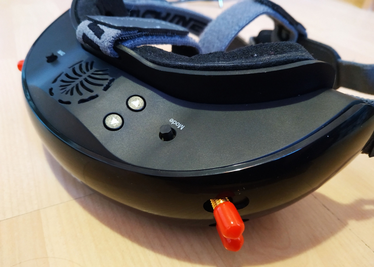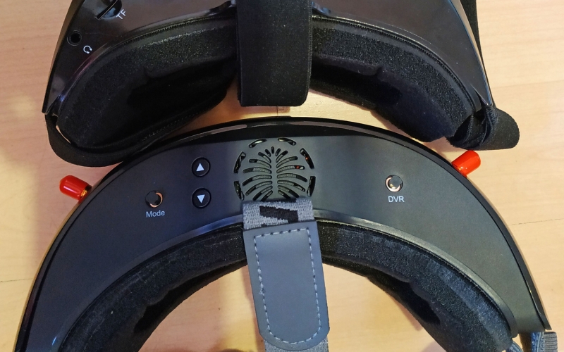 szemüveg anyagminősége amolyan közepes, rendben van, úgysem ez a lényeg. Egyedül talán a DVR és MODE joystickokra lehet panasz, nincs lekerekítve, szinte karcol mikor használjuk. Az összeszerelés rendben van, nem recseg, nem ropog, van benne anyag, ami a súlyon viszont nem kicsit látszik. Már ahogy felemeljük, érezhetjük, hogy ez bizony több a megszokottnál... Az EV200D súlya akku nélkül kereken 300g... Összehasonlítás képpen a korábban tesztelt Aomway szemüveg csak 180g! Ha az aksit is rárakjuk, akkor 398g lesz a fejünkön. Ez még a beépített aksis EV800D doboz szemcsinél is több, az is csak 378 gramm. Mit jelent ez a gyakorlatban? Azt kell mondjam hogy nemsokat. Fejre felvéve, miután felraktam a vastagabb szivacsot és a felső fejpántot is, egész kényelmes, talán még kényelmesebb is mint a könnyebb Aomway. Ez adódhat a jobb szivacs, fejpánt és méret miatt, ez jobban passzol a fejemre. Persze ez simán fejméret függő, másnak lehet kényelmetlen, ezért is mondjuk mindig, keressetek fel pár FPV srácot, és próbáljátok fel mi a nektek kényelmes, ez nagyon fontos, nem lesz jó feeling kényelmetlen szemcsivel repülni.