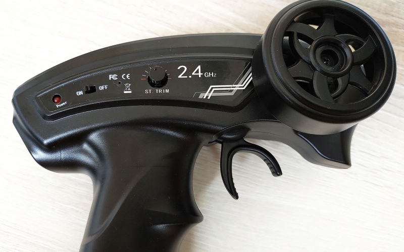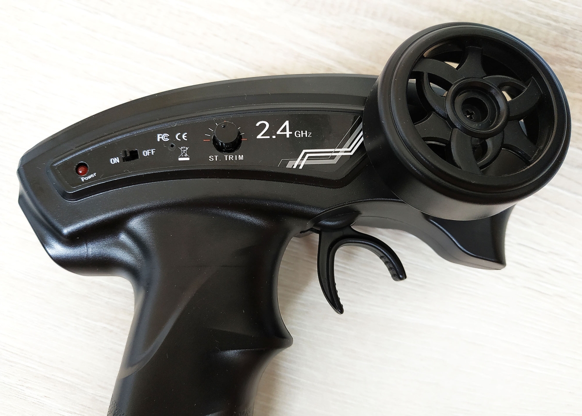 Sokat nem fogok tudni írni róla, mivel nem fogtam, láttam még komolyabb autós távot, de ez szerintem a legegyszerűbbek közé tartozik, nyilván ebbe az árkategóriában mást nem várhatunk. Ki/be kapcsoló, trimmer, irány tekerő és gáz kar, ennyi. 3db AA-s méretű elemről működik, amit szintén nem kapunk a csomagban, úgyhogy ha nincs otthon, kezdhetünk ezzel mielőtt kipróbálnánk. A tekerő egyebként elég kis úton jár, így a finom kis ívű kanyarodáshoz elég óvatosan kell tekerni rajta, de azért meg lehet szokni. A kerekek egyébként 56°-ban fordulnak. Hatótávnak 150-180 métert írnak, nem próbáltam ki, ha sort kerítek rá majd beleírom a cikkbe utólag.